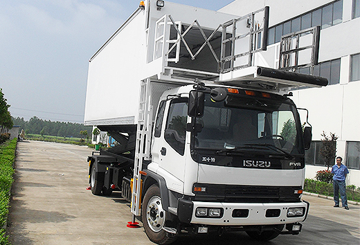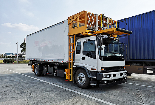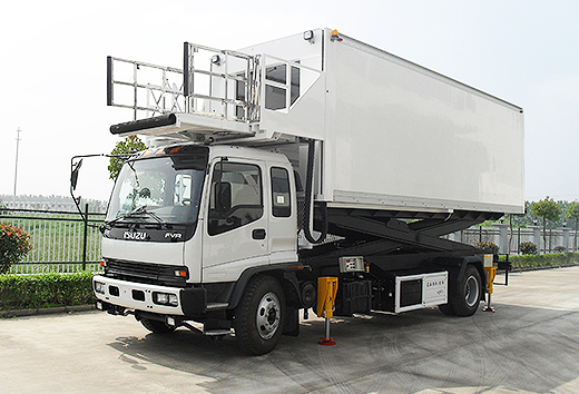 CT-SP600食品車(chē)為安裝在ISUZU FVR商用底盤(pán)上的飛機(jī)食品車(chē),通過(guò)液壓剪刀機(jī)構(gòu)實(shí)現(xiàn)廂體的升降。此車(chē)型可服務(wù)于艙門(mén)高度為2740mm到6020mm的所有機(jī)型。