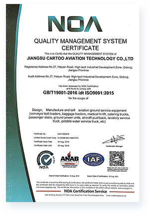 目前公司產(chǎn)品已覆蓋機(jī)場包括飛機(jī)服務(wù)、行李貨運(yùn)地面服務(wù)、航空旅客服務(wù)以及新能源機(jī)場服務(wù)等適用領(lǐng)域,并可按用戶要求提供各類定制產(chǎn)品的設(shè)計(jì)和生產(chǎn)服務(wù)。公司所有產(chǎn)品設(shè)計(jì)和生產(chǎn)滿足國際民航組織(IATA)和中國民航總局(CAAC)設(shè)備技術(shù)要求,工廠生產(chǎn)流程嚴(yán)格按照ISO質(zhì)量管理體系,于2018年8月成功通過了質(zhì)量體系ISO9001:2015認(rèn)證。